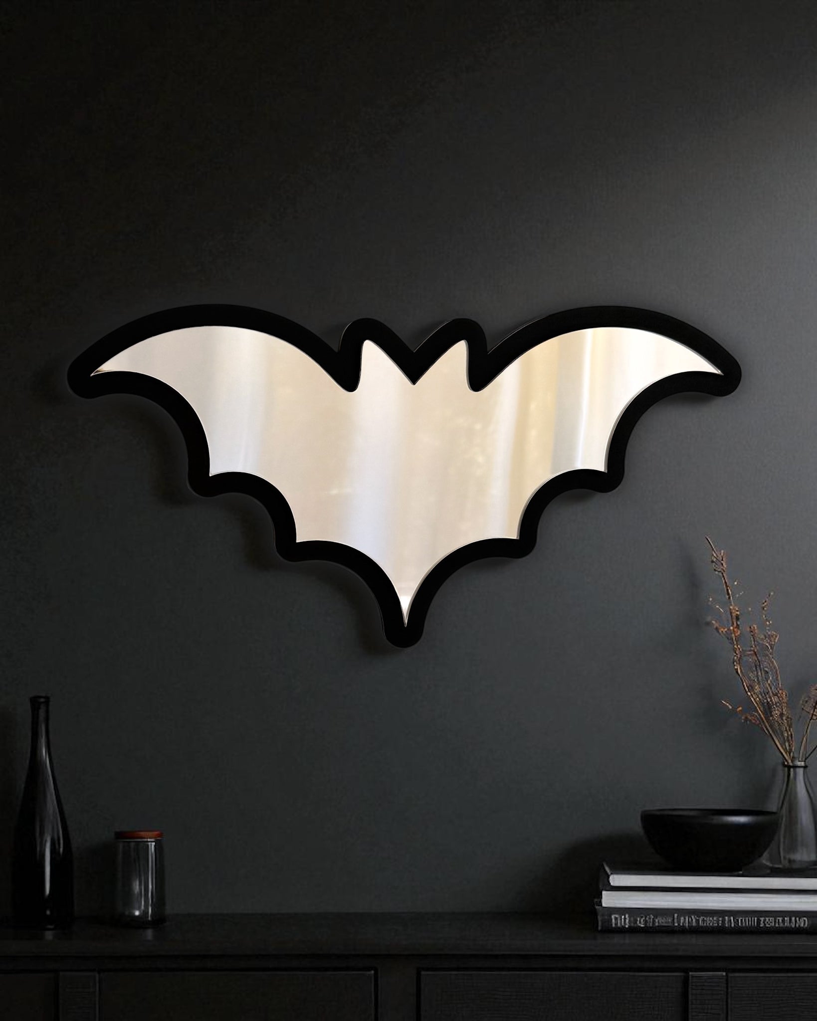 Design: Bold bat silhouette — gothic staple reimagined as mirror wall art