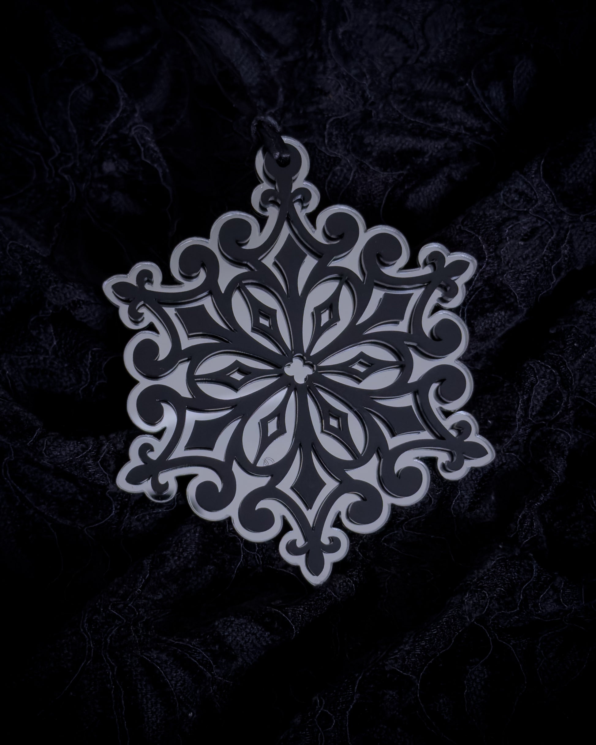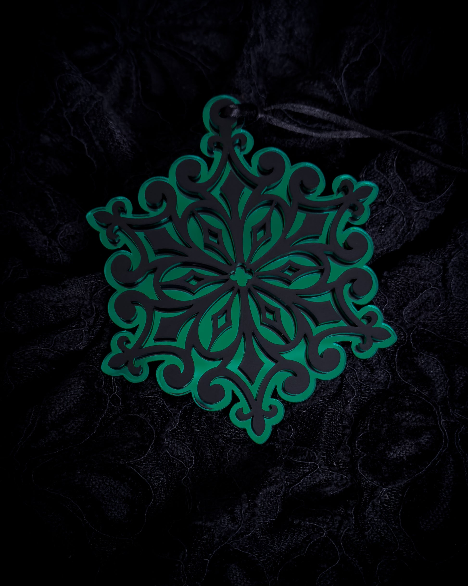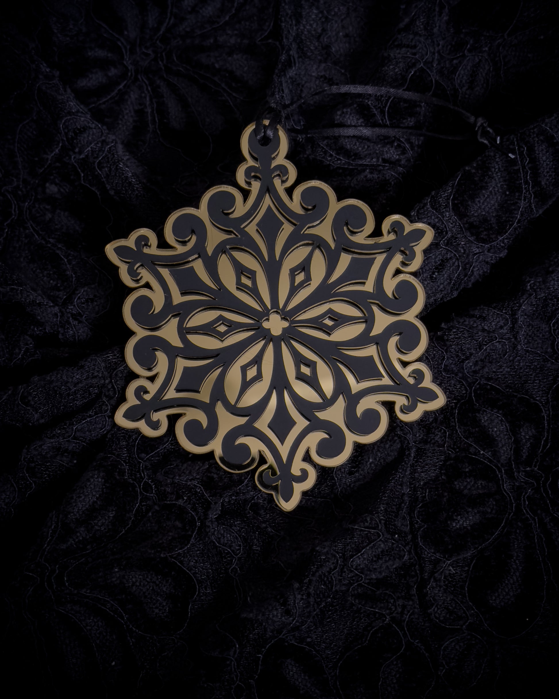 The Cathedral Snowflake Ornament blends winter’s geometry with the grace of gothic rose windows. Each piece captures the symmetry of a snowflake through the lens of sacred architecture — intricate, elegant, and designed to shimmer like stained glass in candlelight.