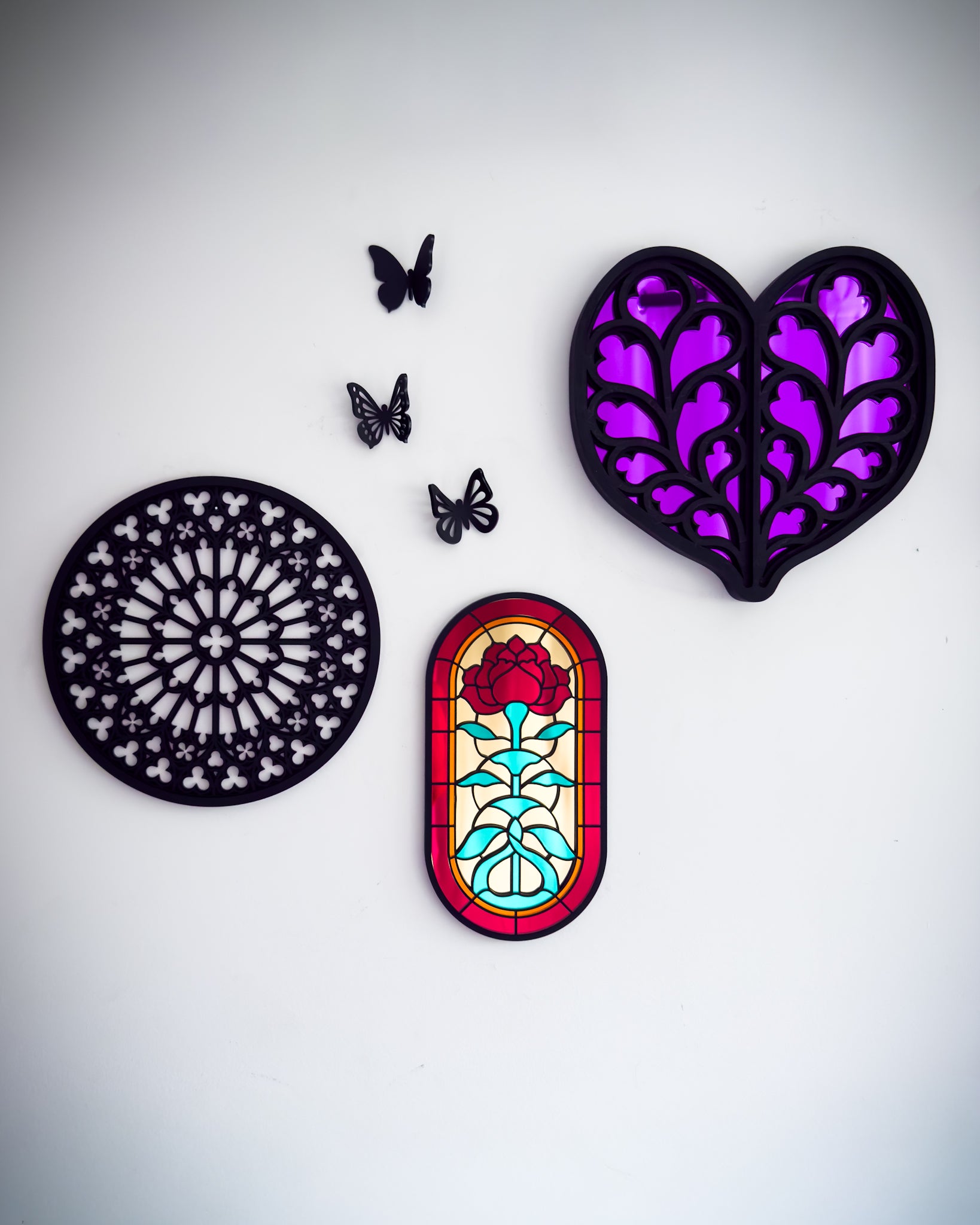 Inspired by the upside down and residential architecture stained-glass window forms.