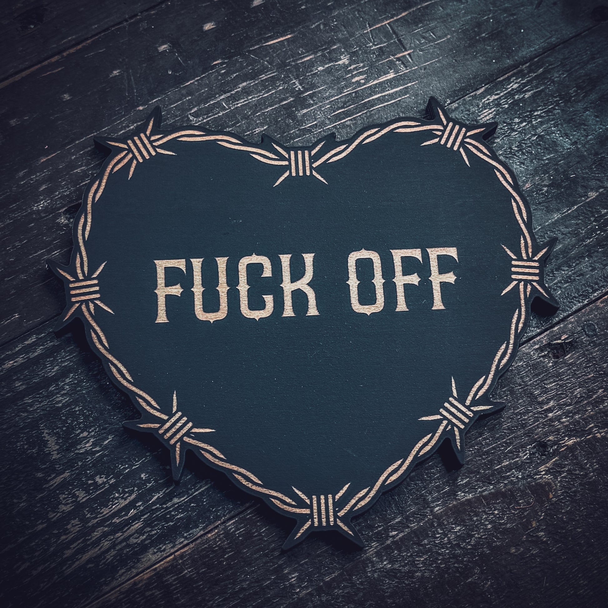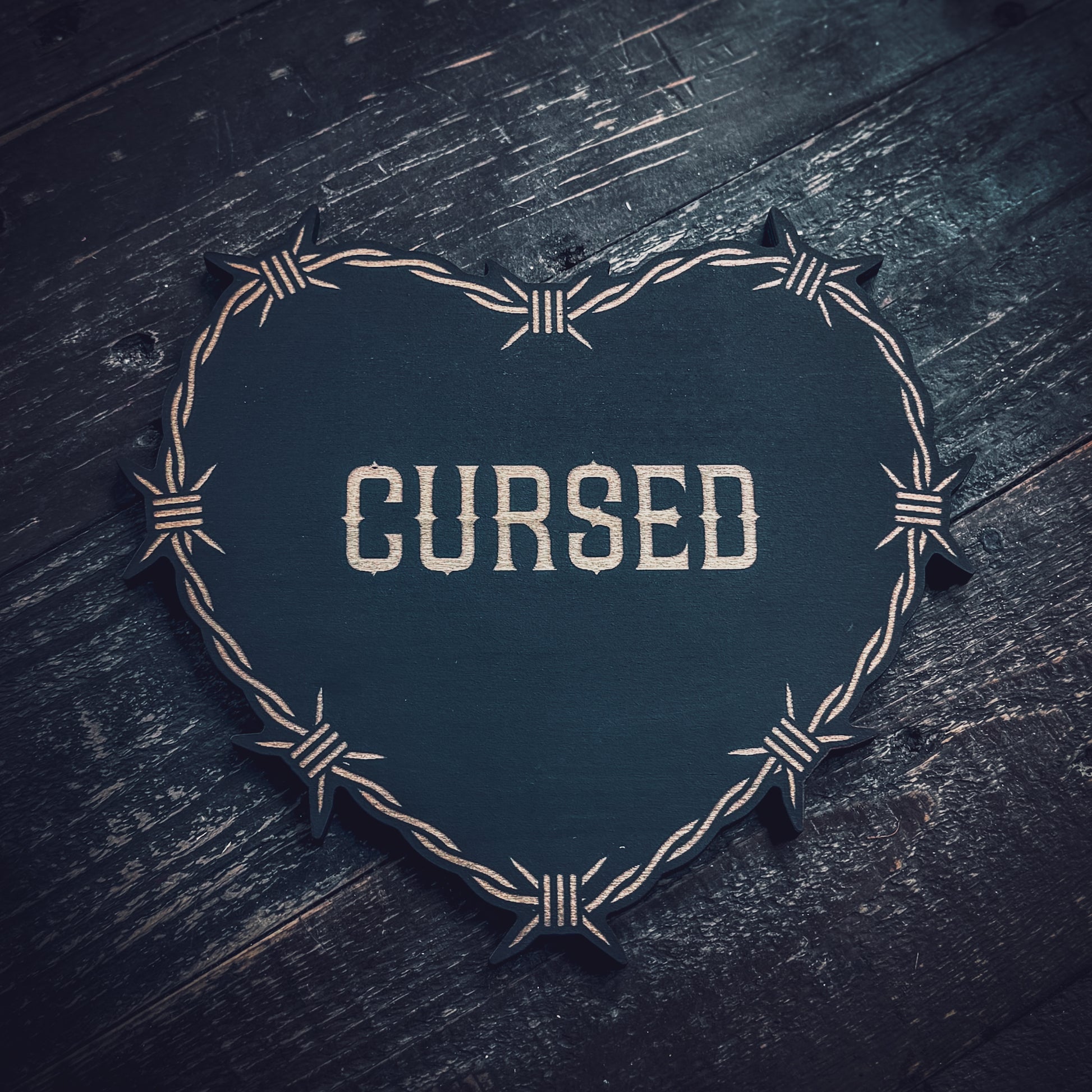 Crafted from black-stained birch wood and backed with matte black acrylic, these hearts reveal warm wood grain lettering that feels raw, bold, and beautifully detailed. Perfect for gothic interiors, witchy workspaces, or anyone who loves spooky aesthetics with a wink of rebellion.