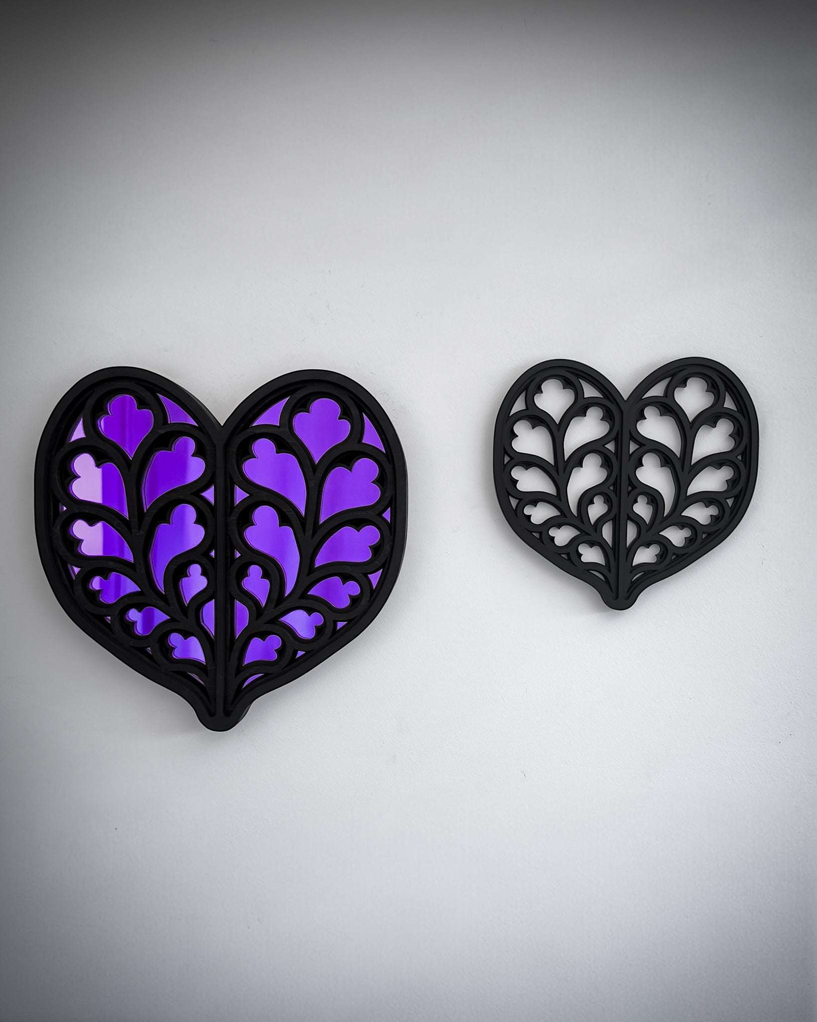 Crafted from layered black-stained birch wood and finished with a high-shine acrylic mirror insert, this piece captures both light and shadow just as cathedral tracery has done for centuries. With its sculpted depth and luminous colour options, it becomes a bold centrepiece for moody interiors, gallery walls, and gothic sanctuaries.