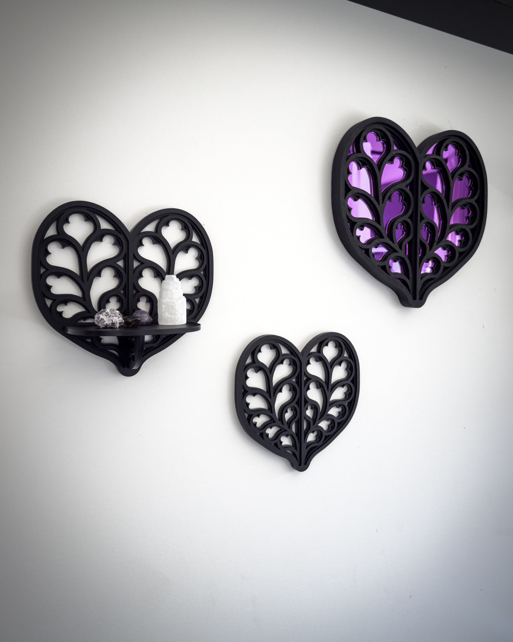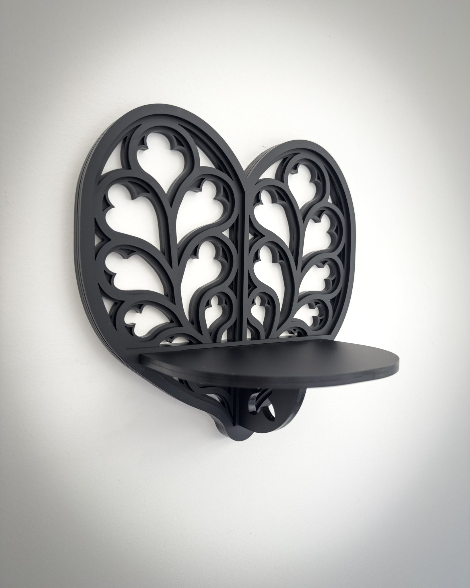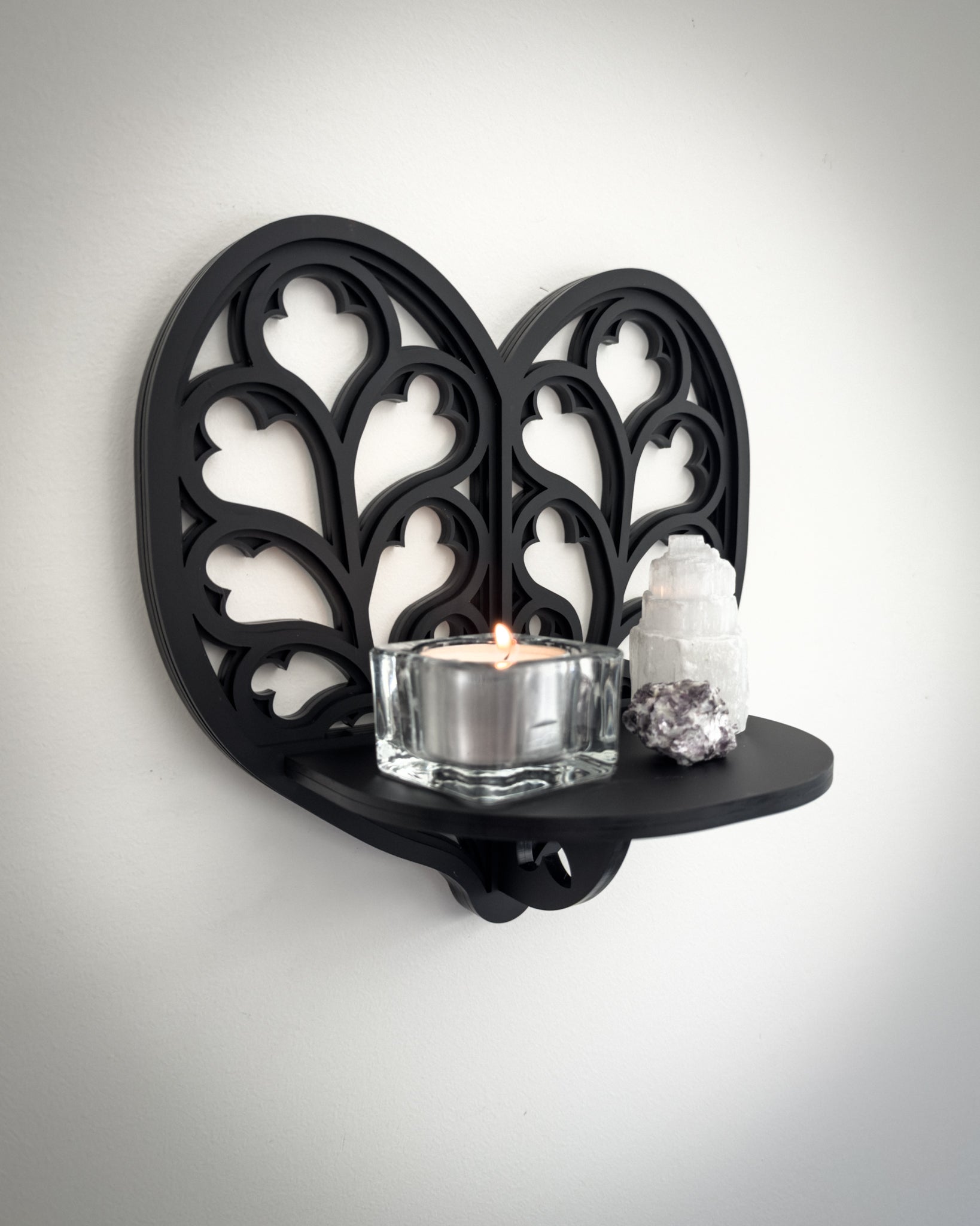 Bring romance and reverence into your home with the Heart of Yorkshire Tracery Shelf, inspired by the Great West Window of York Minster. This gothic design transforms one of the most beloved cathedral tracery patterns into a functional altar or display shelf, perfect for holding crystals, candles, or charms.