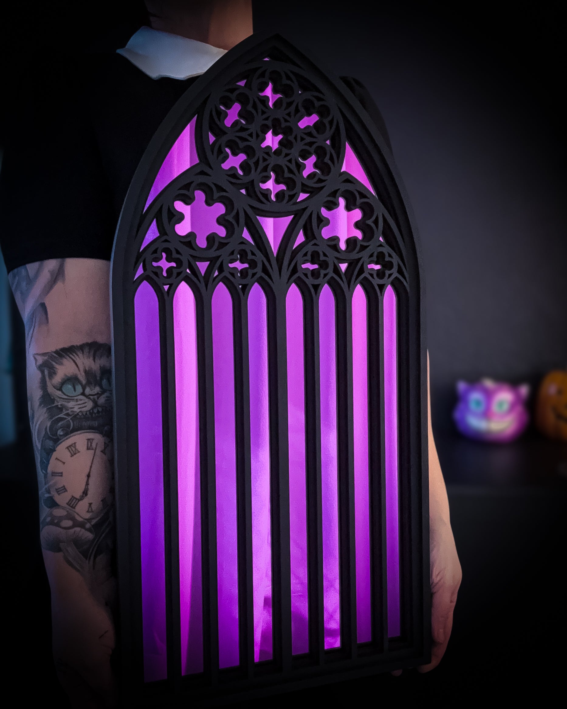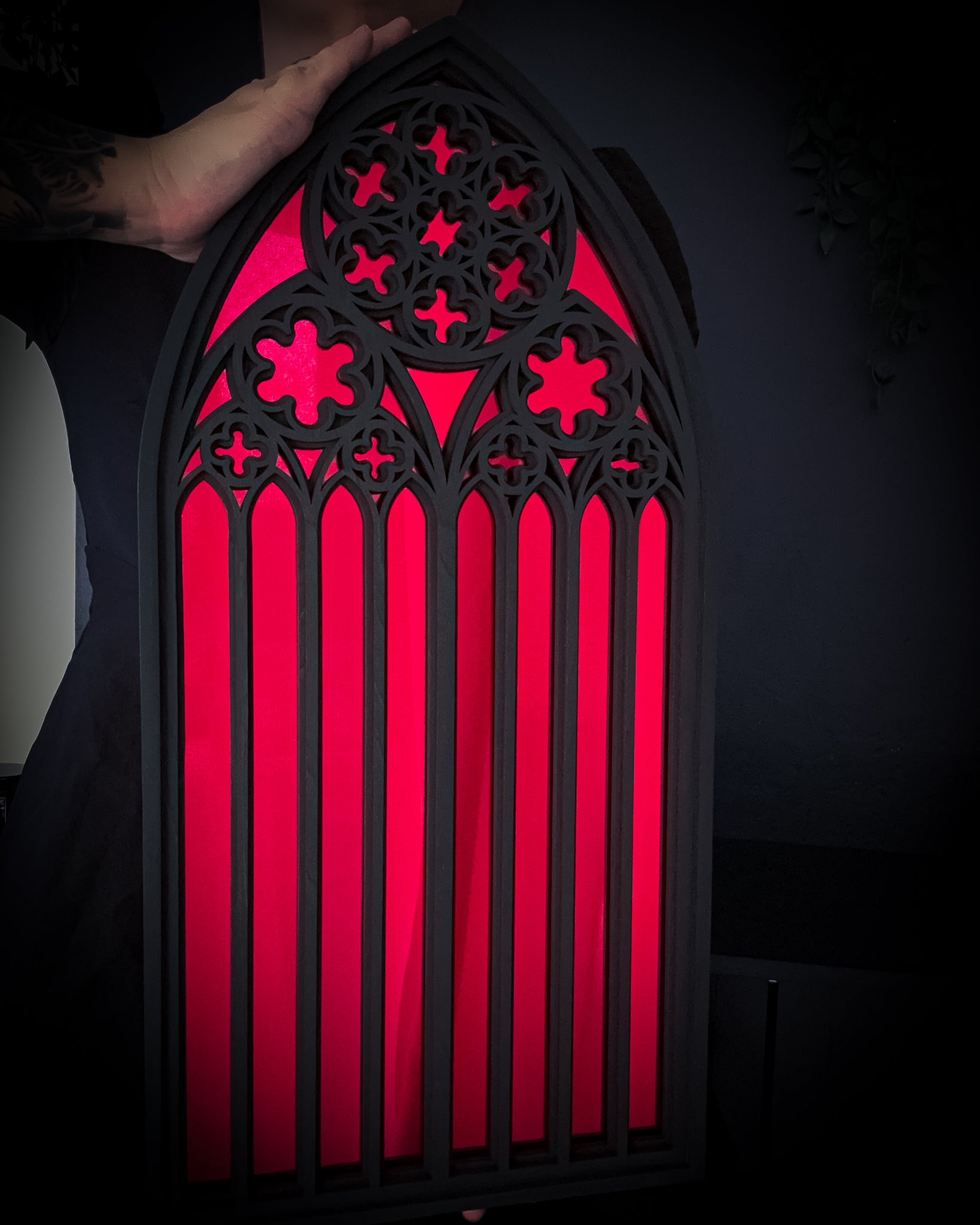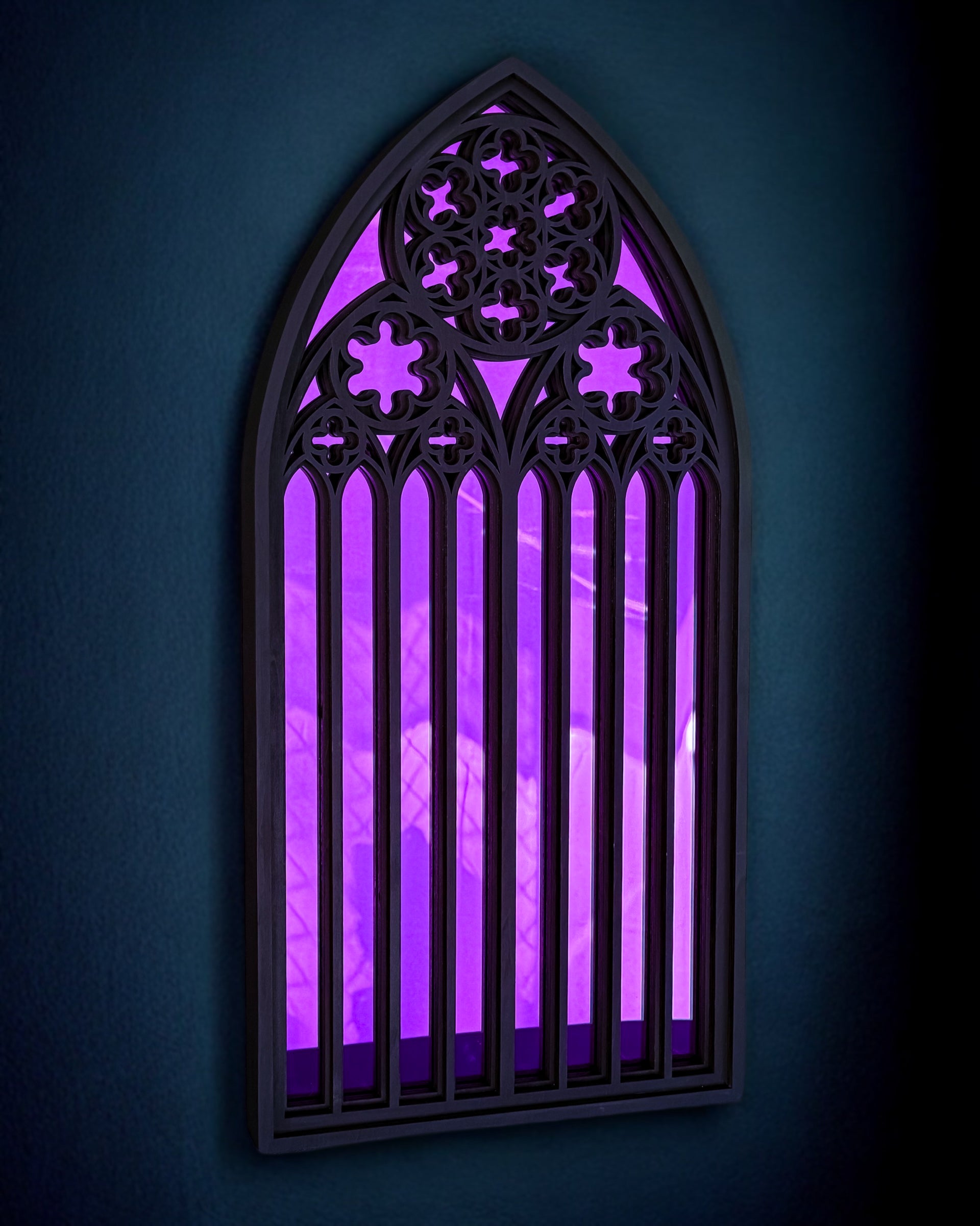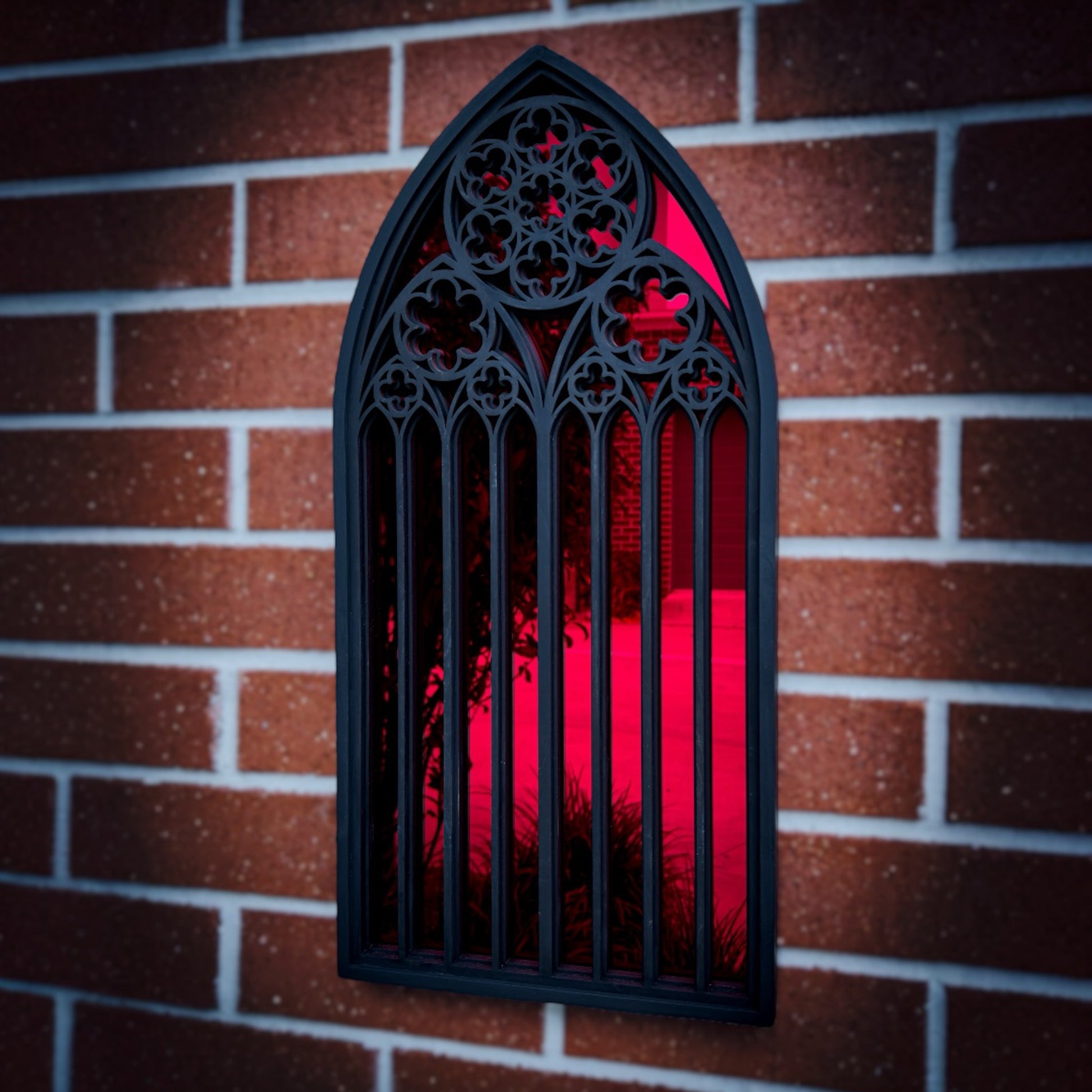 Handcrafted from layered black-stained birch wood and finished with your choice of mirror insert, this piece brings old-world majesty into modern gothic styling. With its sculpted depth and luminous colour options, it reflects not only your space but the echoes of sacred architecture itself.