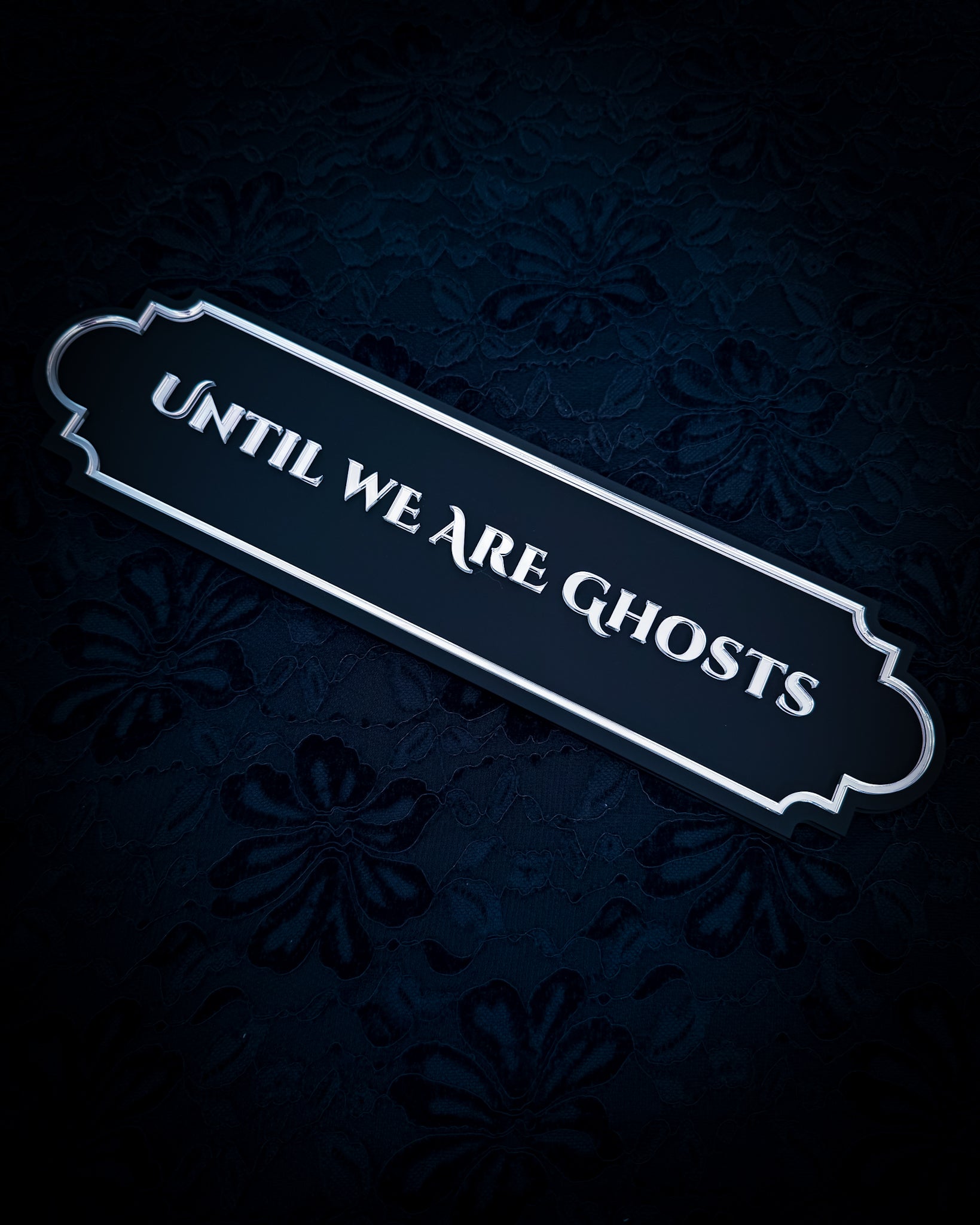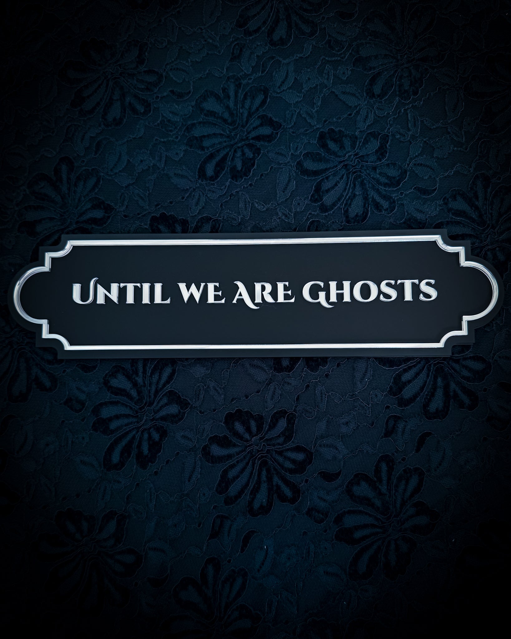 Hauntingly poetic, the Until We Are Ghosts Text Plaque whispers of love, memory, and eternity. Wide and elegant, its mirror lettering framed in matte black shimmers by candlelight — a reminder of bonds that linger beyond the veil.